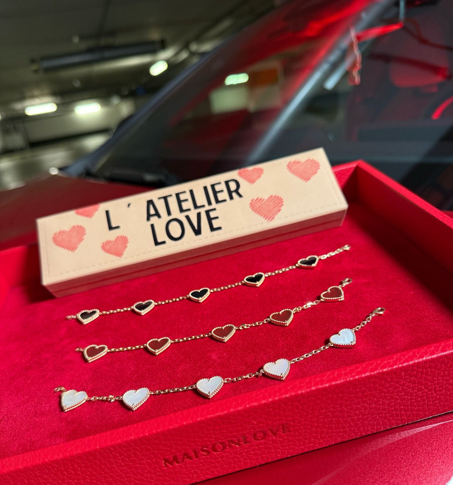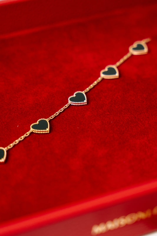 18k LUV Bracelett mit schwarzen Onyx-Herzen – ca. 10 g