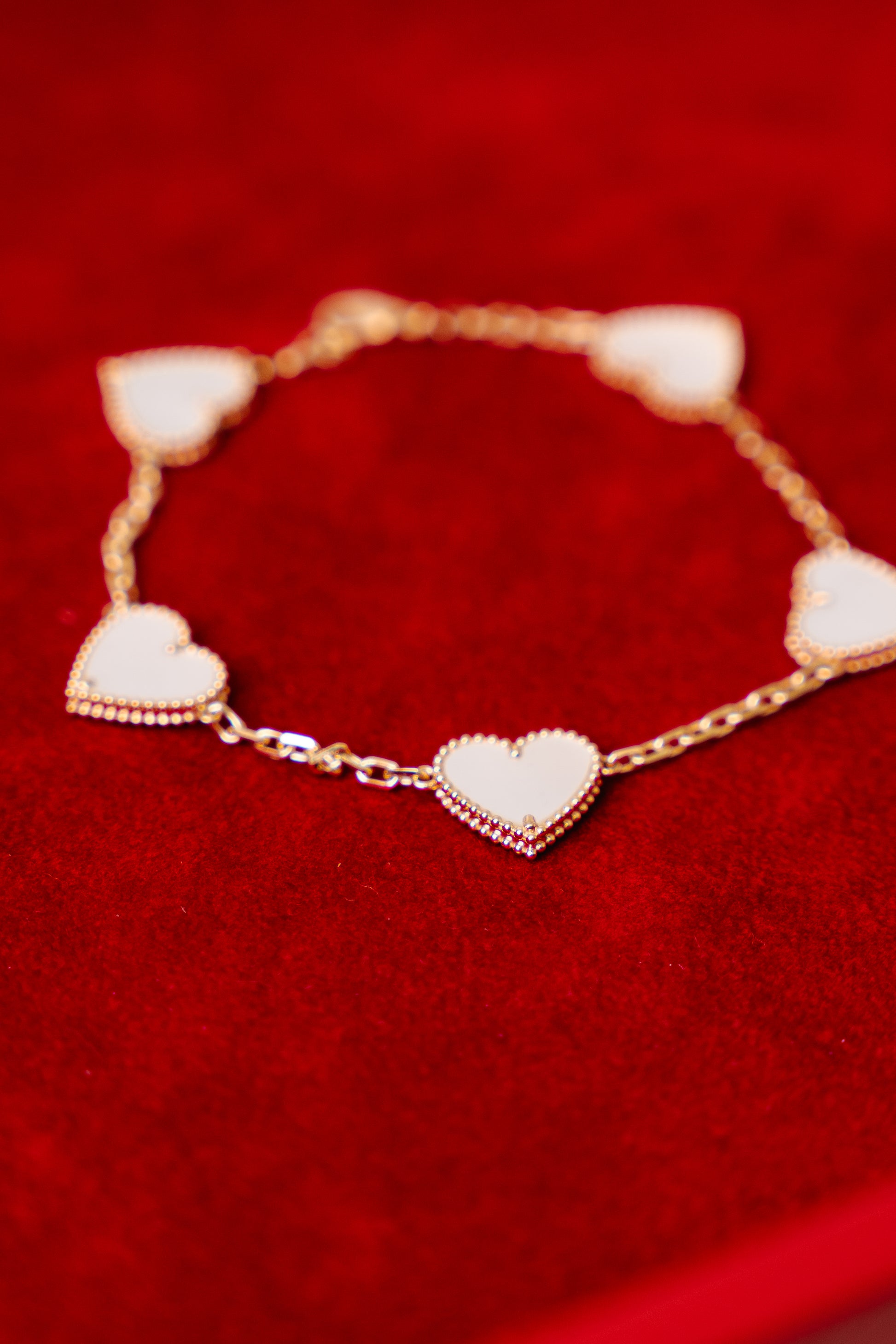 18k LUV Bracelett mit weißen Achat-Herzanhängern – ca. 10 g
