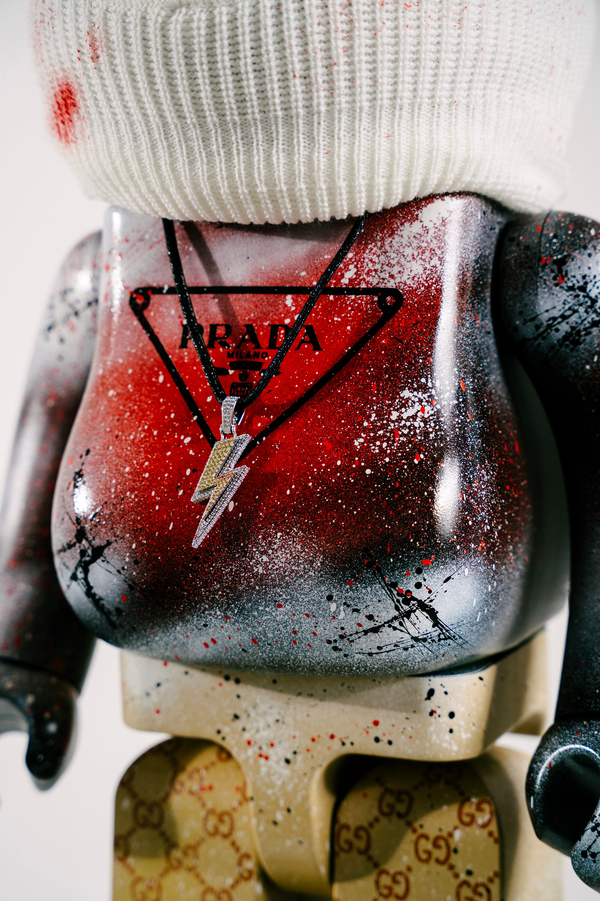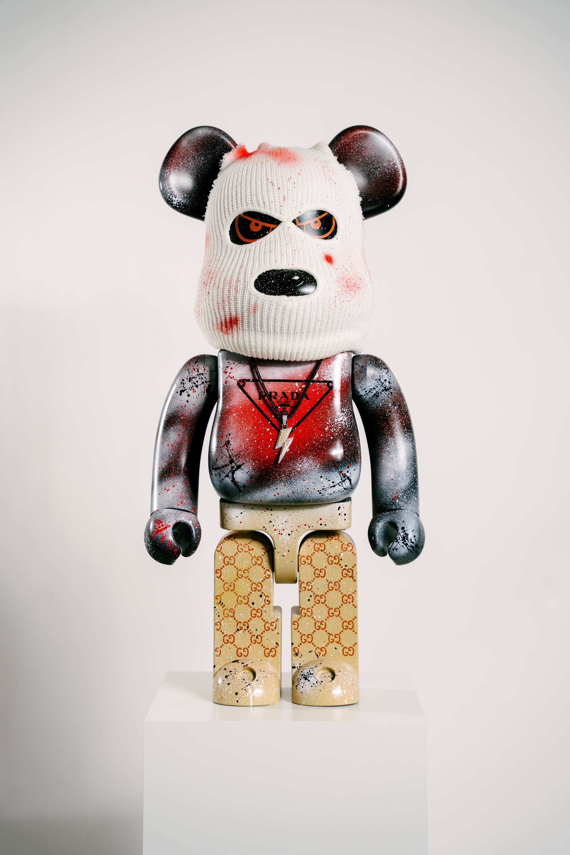 Diese exklusive 70 cm Bearbrick Gangster Edition ist ein außergewöhnliches Custom-Art-Unikat, das mit viel Liebe zum Detail gestaltet wurde. Auffällige Street-Art-Elemente, gesprühte Effekte und das markante Maskendesign verleihen der Figur einen kraftvollen, urbanen Look.
