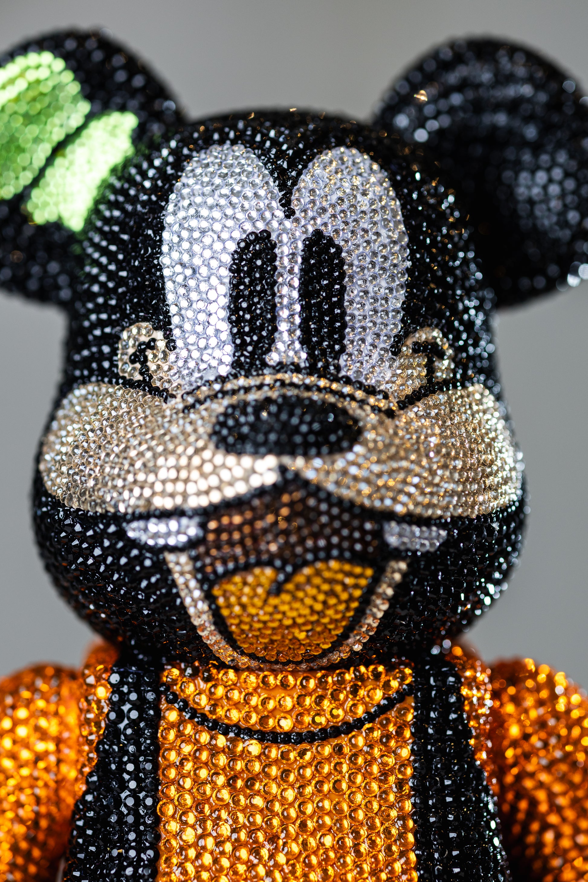 Dieser exklusive Bearbrick (28 cm) wurde in aufwendiger Handarbeit vollständig mit über 8.000 funkelnden Strasssteinen veredelt. Das charakterstarke Goofy mit goldenen Akzenten und ausdrucksstarkem Look macht diese Figur zu einem absoluten Hingucker – perfekt für Sammler und alle, die außergewöhnliches Interior lieben.