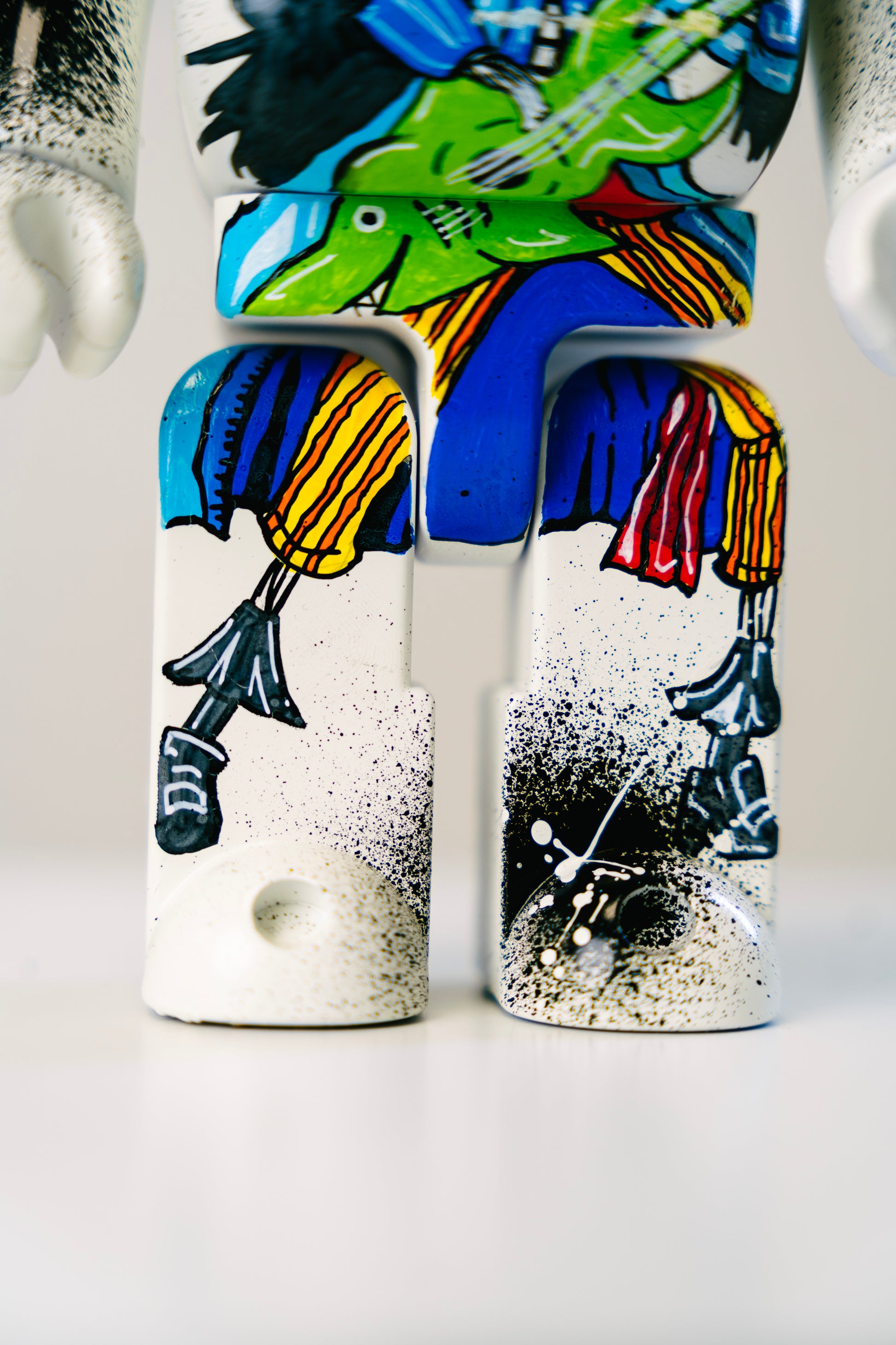 Die weiße Basis mit schwarzen Farbspritzern sorgt für einen modernen Street-Art Look und lässt das farbintensive Motiv besonders stark hervortreten. Durch seine kompakte Größe ist dieser Bearbrick perfekt geeignet als dekoratives Highlight in Wohnräumen, Büros oder Sammlervitrinen.