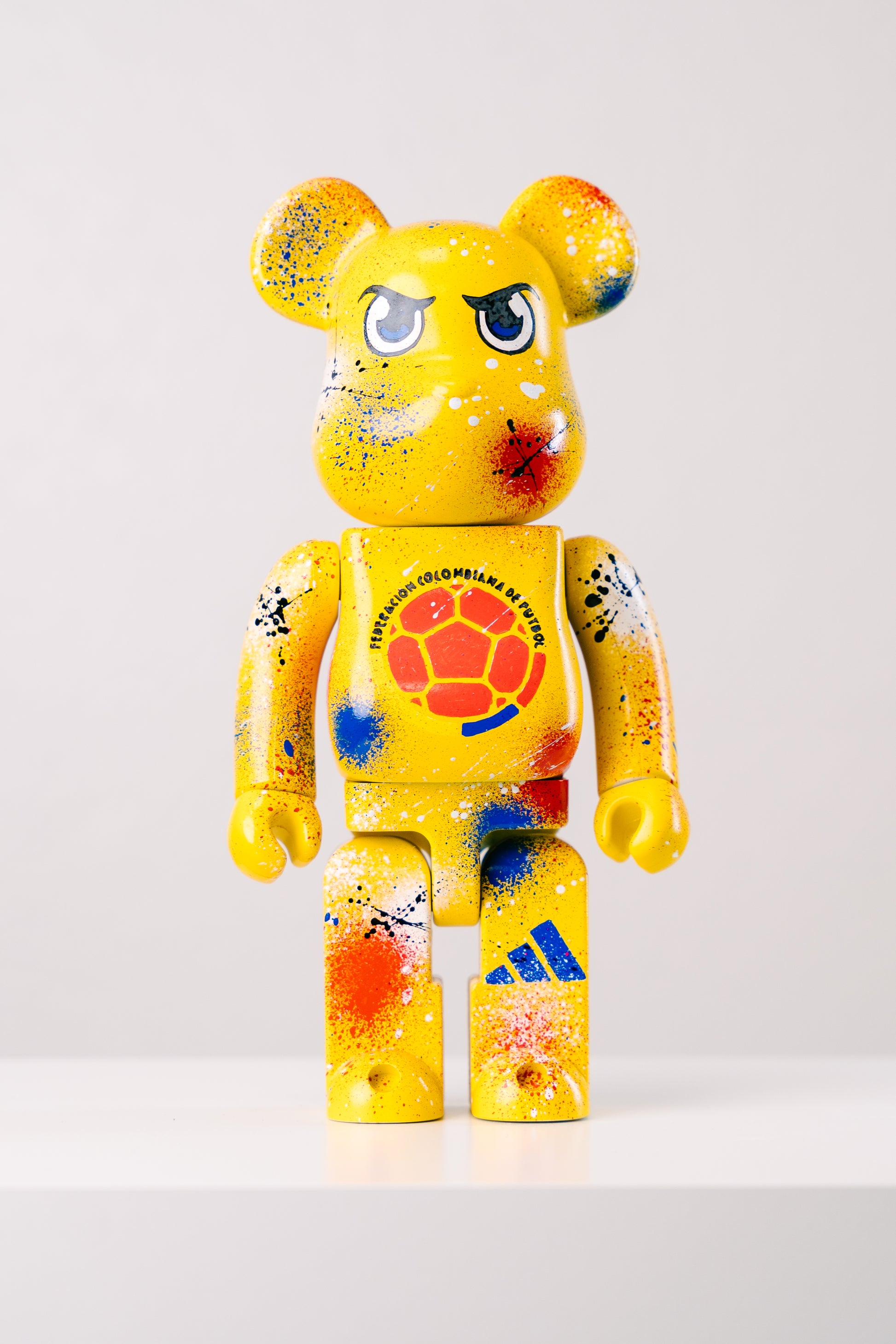 Dieser exklusive 28 cm Bearbrick wurde in aufwendiger Handarbeit im Stil des Nationalwappens gestaltet. Die Kombination aus kräftigen Farben, Airbrush-Effekten und dem ikonischen Emblem macht diese Figur zu einem besonderen Highlight für Fans, Sammler und alle, die eine starke Verbindung zu Kolumbien ausdrücken möchten.
