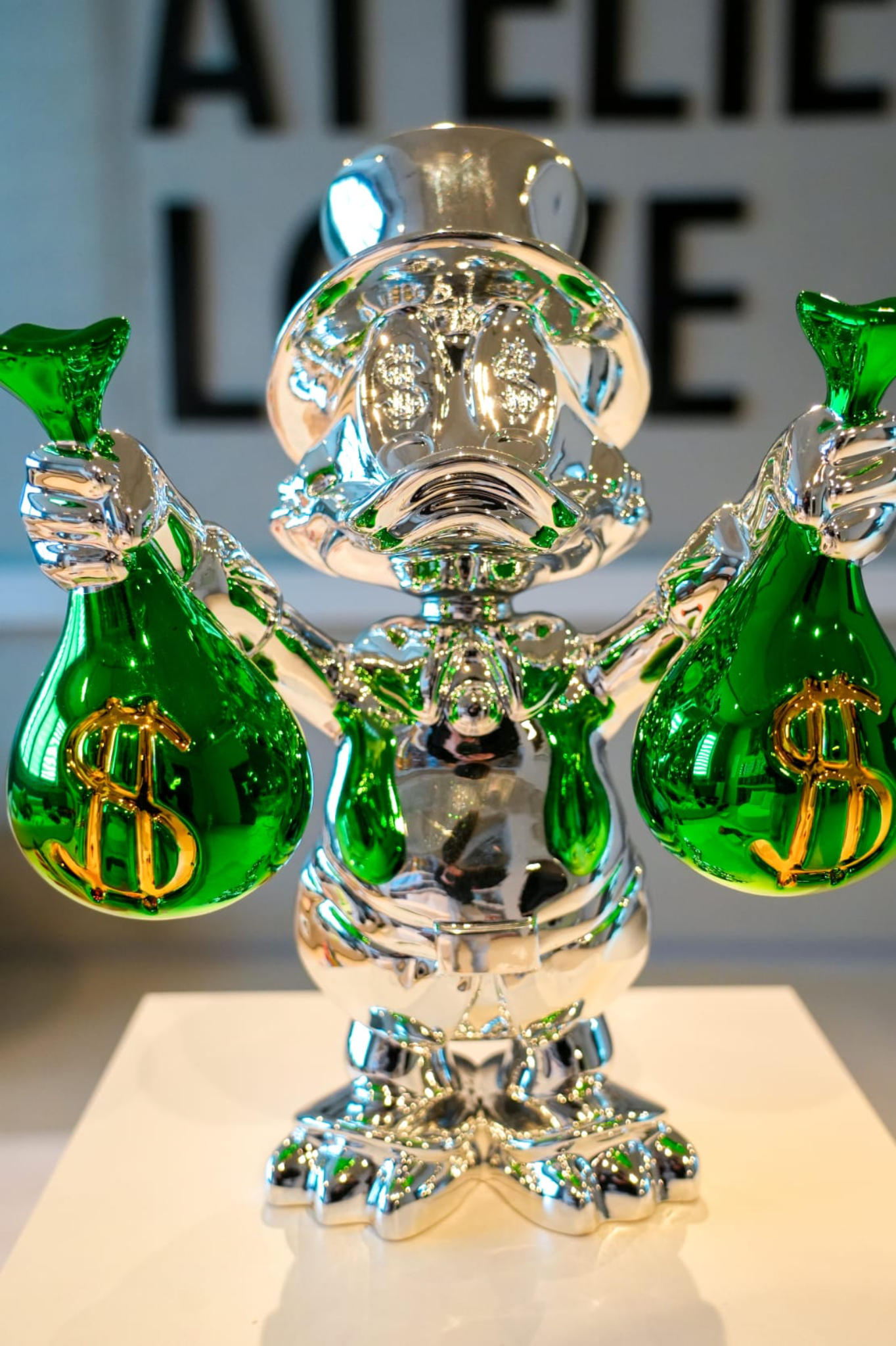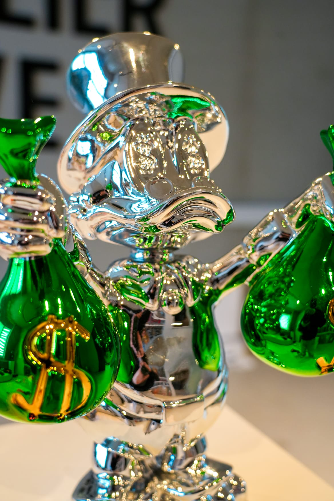 Die Duck Crown Pop Art Sculpture – Silver Edition ist ein außergewöhnliches Sammlerstück für Liebhaber ikonischer Charaktere und moderner Designer-Kunst. Mit ihrer hochglänzenden silbernen Oberfläche, den auffälligen grünen Akzenten und der markanten Pose wird diese Figur zu einem echten Blickfang – ob im Wohnraum, Büro, Showroom oder als Highlight einer exklusiven Sammlung.