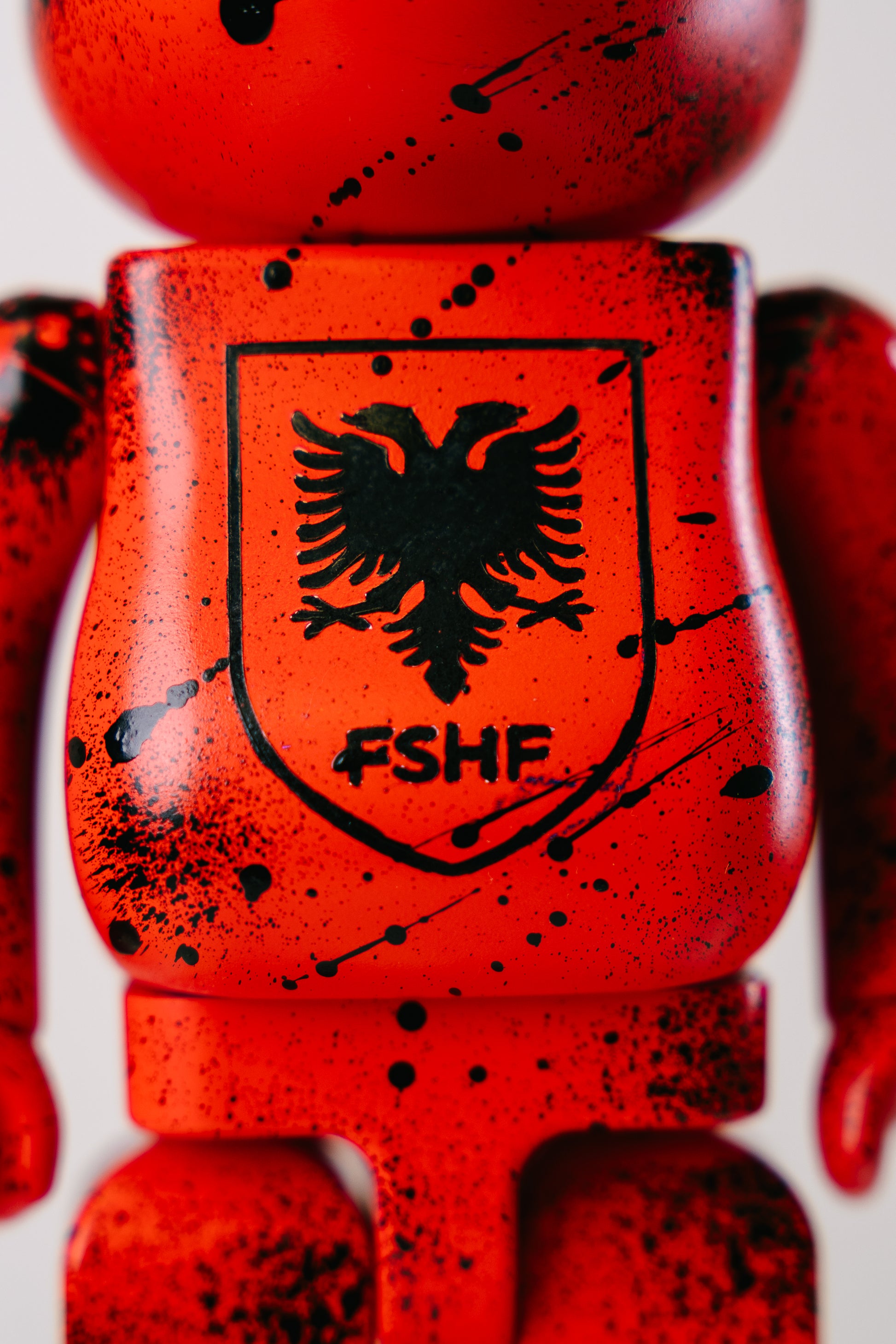 Dieser exklusive 28 cm Bearbrick wurde in aufwendiger Handarbeit im Stil des Nationalwappens gestaltet. Die Kombination aus kräftigen Farben, Airbrush-Effekten und dem ikonischen Emblem macht diese Figur zu einem besonderen Highlight für Fans, Sammler und alle, die eine starke Verbindung zu Albanien ausdrücken möchten.